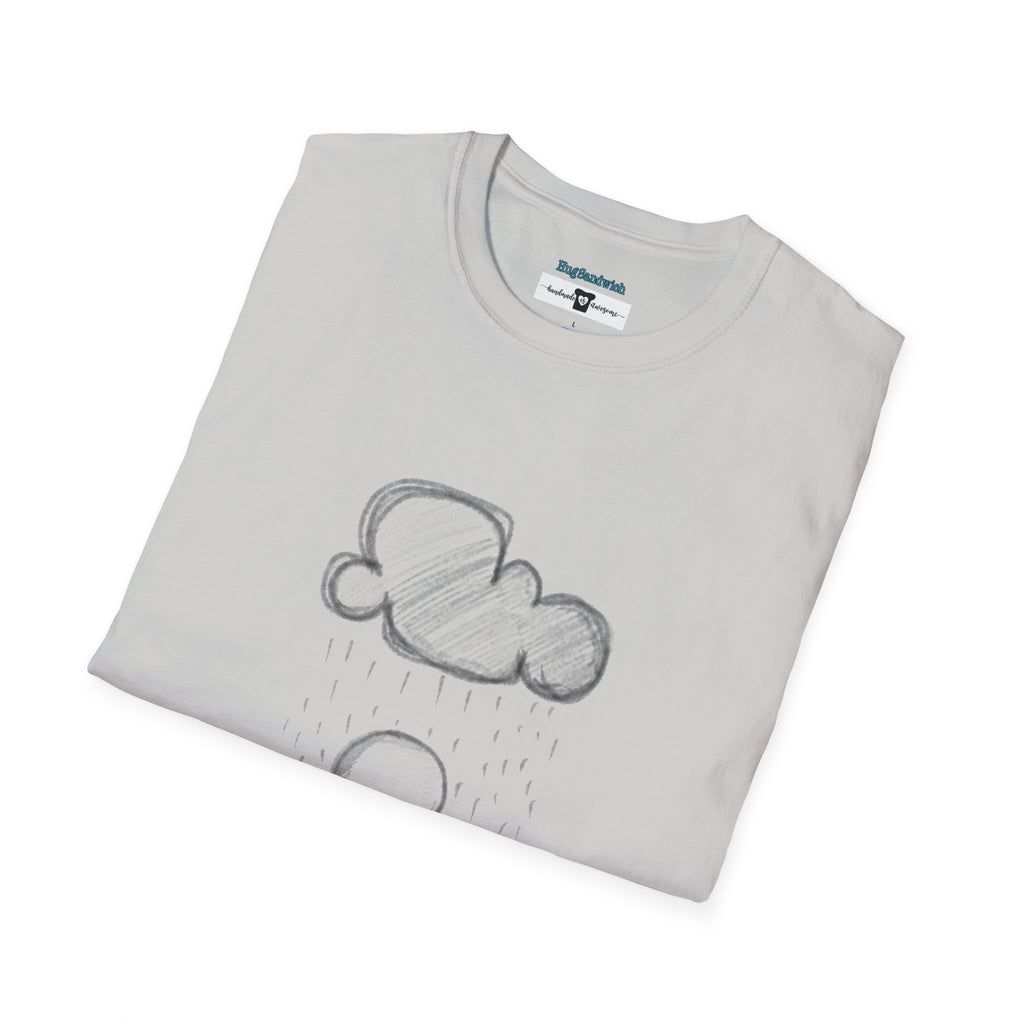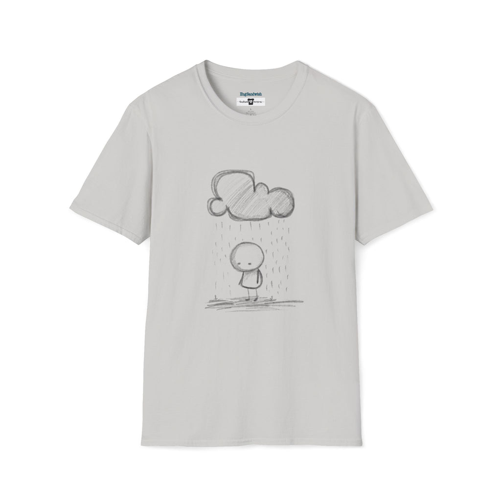 Say hello to your favorite low-key vibe. The Little Cloud tee features a simple, hand-drawn figure standing beneath its own personal raincloud—a soft and honest nod to those days when you just feel… meh.